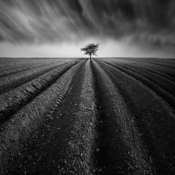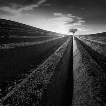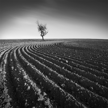 The furrows in the field, long grooves created by human. Shallow or deep it depends on the plan associated with the expectation of good crop. Images of the furrows capture individual tracks pointing to the lone tree that is overseeing action in the field for decades.